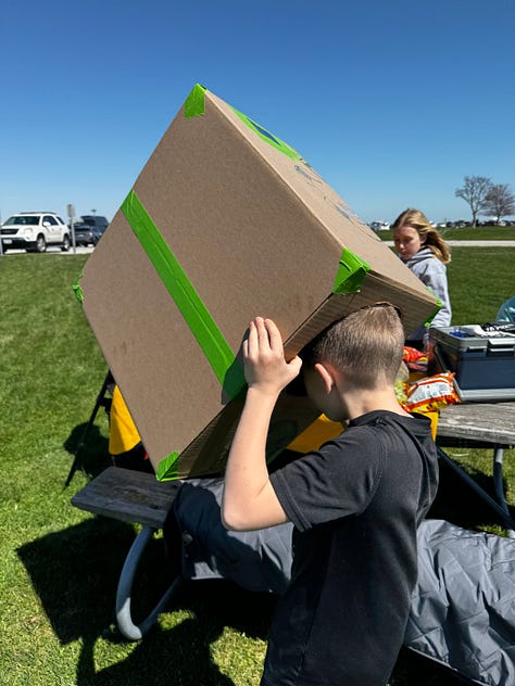 My senses became alive! We hugged, ate, laughed, played, listened to music, took pictures of each other, tossed the football, played on the playground, and enjoyed our time together. We also pulled out four eclipse boxes from the car we made together on Sunday so that each child could see the event differently from their solar glasses and the back of my camera's viewfinder.