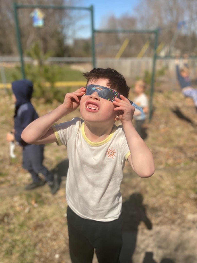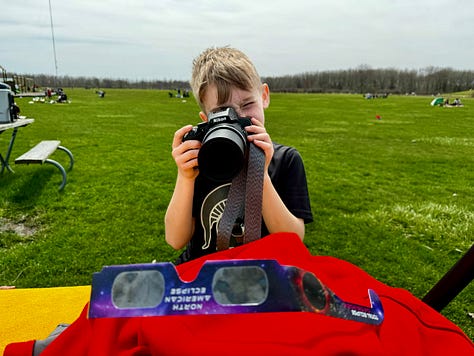 Across the state in Michigan at his school, one of my other grandchildren Carson is experiencing the Eclipse on the other side of Michigan. He's the oldest of three. When he was picked up from school by my other daughter Annemarie, he promptly said,